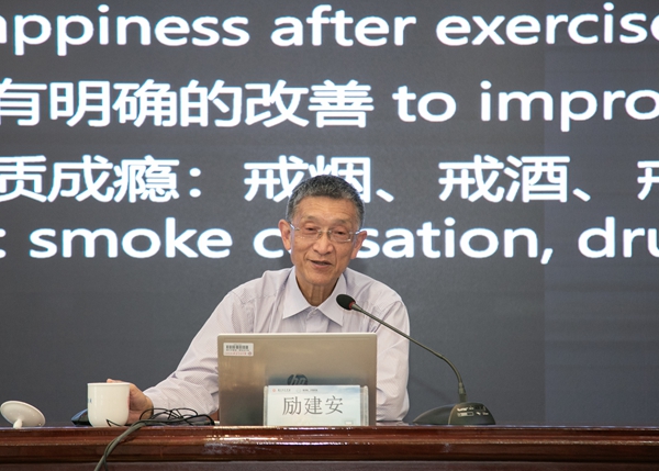 励建安院士致力于心血管康复、神经瘫痪康复(脊髓损伤、脑瘫、脑损伤)、运动分析和运动控制障碍的研究。讲座以“运动是医药”为主题,从医药的特质、运动的特质、运动的作用、身体不同部位的生理特质深入浅出地向我们解析了运动对我们身体产生的影响。他说道人生就是一场马拉松,不到终点,我们一直都在路上!我们不能停止运动,生命更是在于运动。