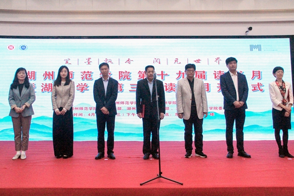 4月17日下午,我校第十九届读书月活动开幕式在东校区图书馆一楼举行。副校长舒志定出席,校党委宣传部、学生处、团委、图书馆,湖州学院图书馆等部门负责人与各二级学院师生代表参加此次仪式。