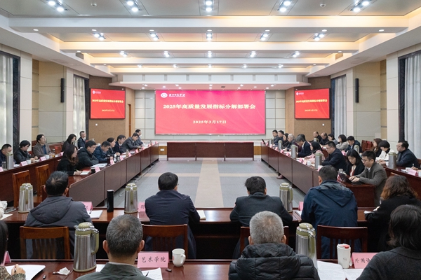 3月17日下午,学校召开2025年高质量发展指标分解部署会。校党委书记许慧霞,副校长(主持行政日常工作)盛况,党委副书记丁敢真,副校长舒志定、李庆峰、楼建林,党委委员、组织部部长劳士健,党委委员、宣传部部长朱小芳,党委委员、党校办主任沈国丰出席,各职能部门、直属单位负责人,各二级学院院长、党委(总支)书记,附属第一医院负责人等参加会议。会议由许慧霞主持。